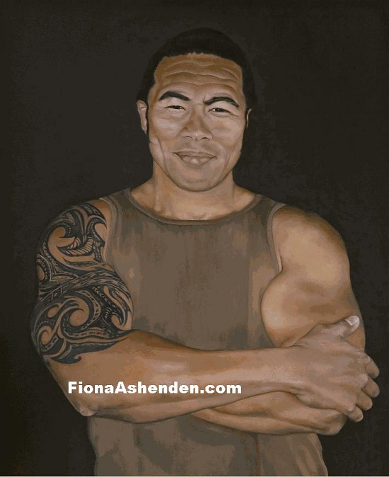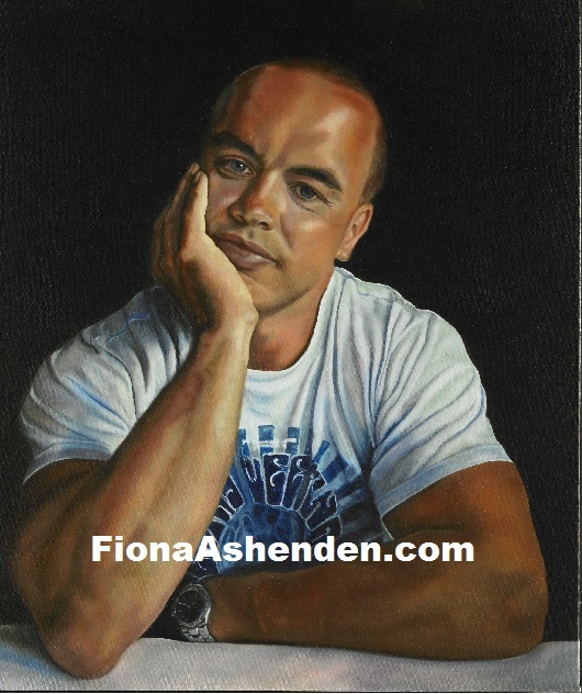 Rob commissioned the portrait as a gift for his mother. Fiona selected this image as it captures a quiet, reflective moment and a characteristic pose as well as Rob’s love of sailing. This is a striking portrait intended to give pleasure to his mother, revealing Rob’s strong, self-determining character, his direction and action, and his values. For Fiona this piece also became a study in shade upon shade of white, as expressed in the sail and Rob’s shirt and hat.